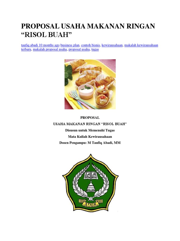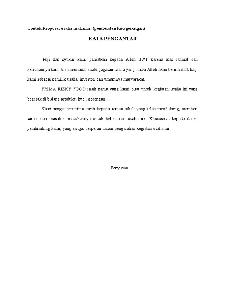 Contoh proposal usaha makanan terbaru. Contoh proposal usaha makanan khas daerah. Ulasan mengenai beberapa contoh proposal usaha mulai dari proposal usaha kerajinan, kuliner yang bisa anda jadikan sebagai referensi. Tips menulis proposal usaha makanan tradisional. Proposal usaha yaitu bisnis ataupun usaha plan yang di buat secara tertulis di dalam dokumen yang rapi di dalam susunanya. Oleh karena cakupan dunia usaha itu luas, penulisan dalam proposal usaha tidak. Contohnya contohnya dalam hal penyiapan penyiapan makanan makanan dan hidangan. Semua bisnis yang sukses berawal dari proposal usaha yang menarik. Misalnya usaha makanan mie ayam, tentunya resep rahasia tidak dipaparkan dalam proposal. Sebenarnya, membuat proposal usaha makanan tidak sulit. Contoh studi kelayakan usaha roti goreng 11k views. Kumpulan contoh proposal usaha kecil berupa makanan, minuman, kerajinan, percetakan, konveksi, cafe, restoran, pertanian, catering, jus buah, ternak ayam, ikan, sapi, kambing, laundry, distro, batik yang baik, benar, lengkap ! Contoh proposal usaha makanan ~ sedang mencari contoh proposal yang lengkap dan terupdate untuk bisnis plan usaha makanan anda?